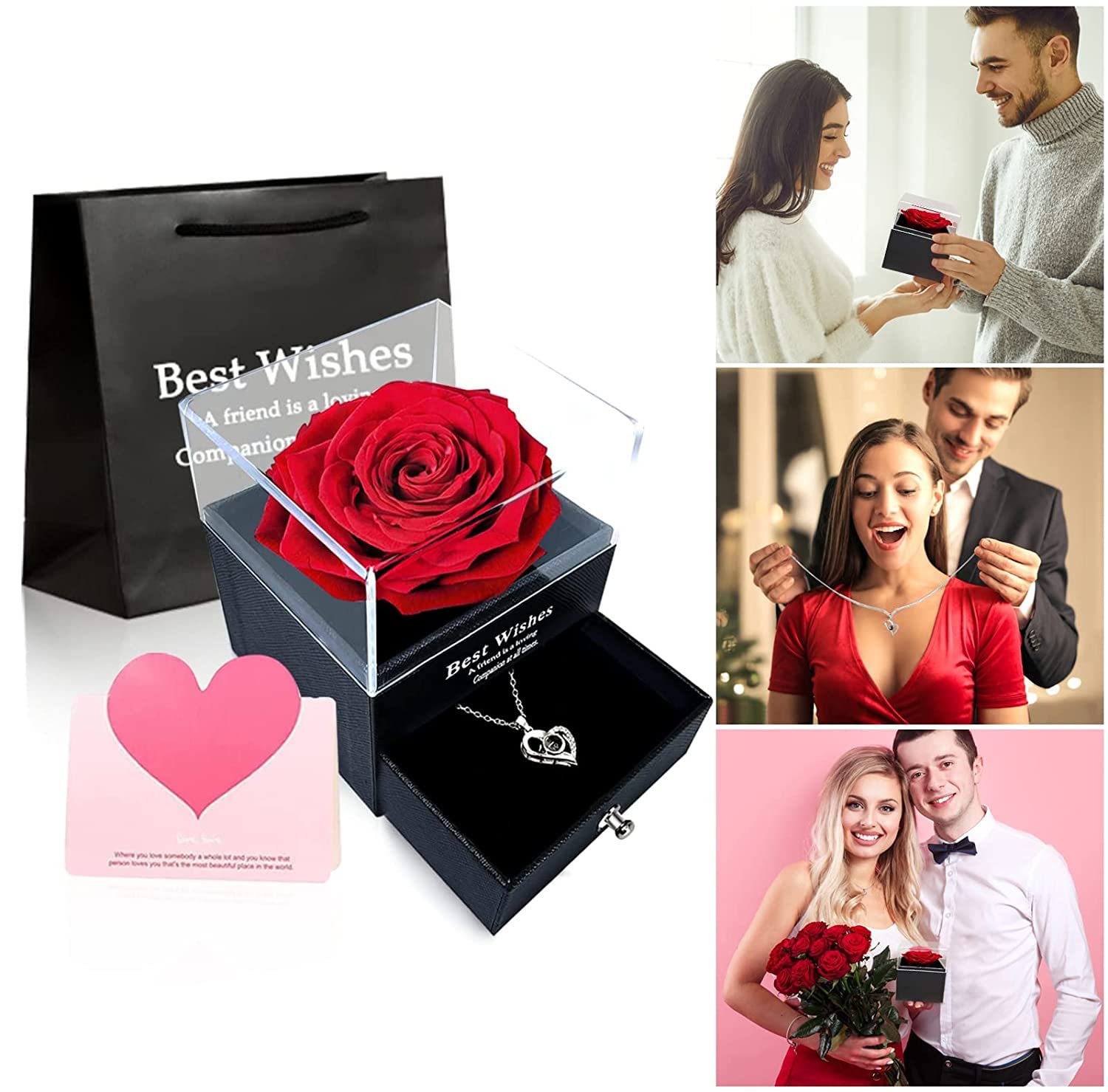 The AuraForever Rose comes nestled in a stunning transparent drawer-style box, accompanied by an elegant gift bag and a greeting card. The box itself doubles as a jewelry or ring box, making it both beautiful and practical.