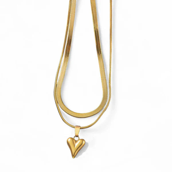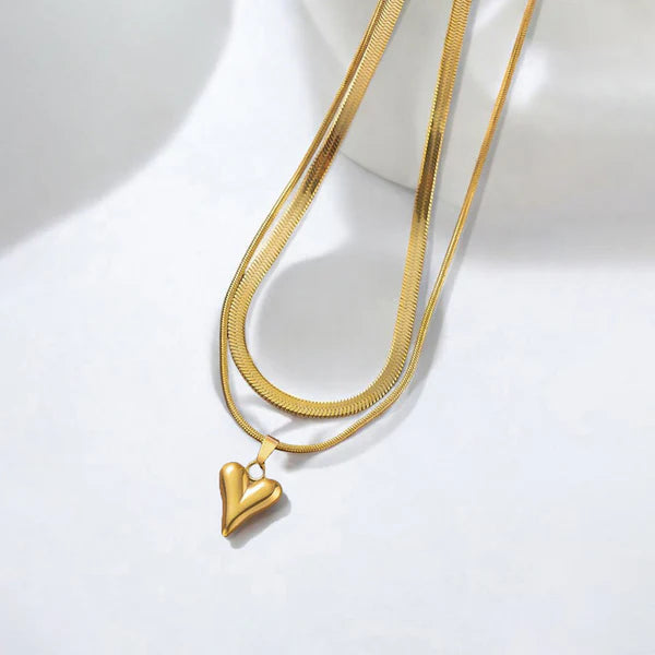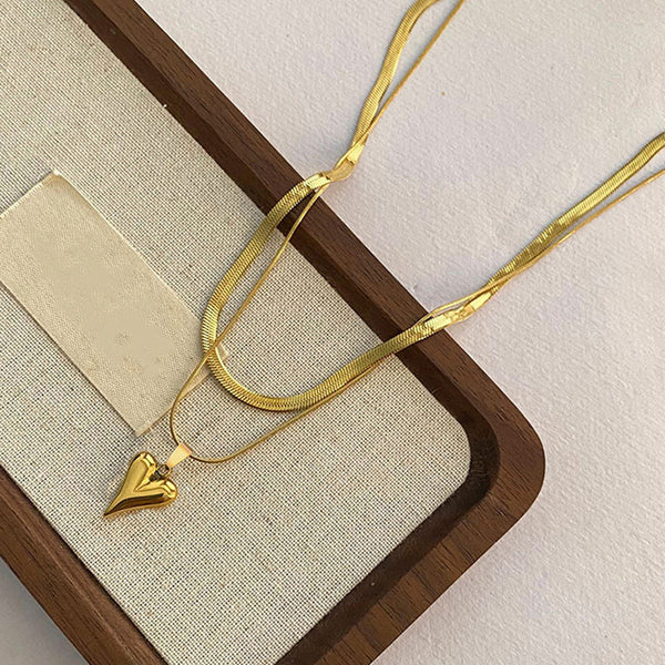 Golden Serene Heart Layers Necklace